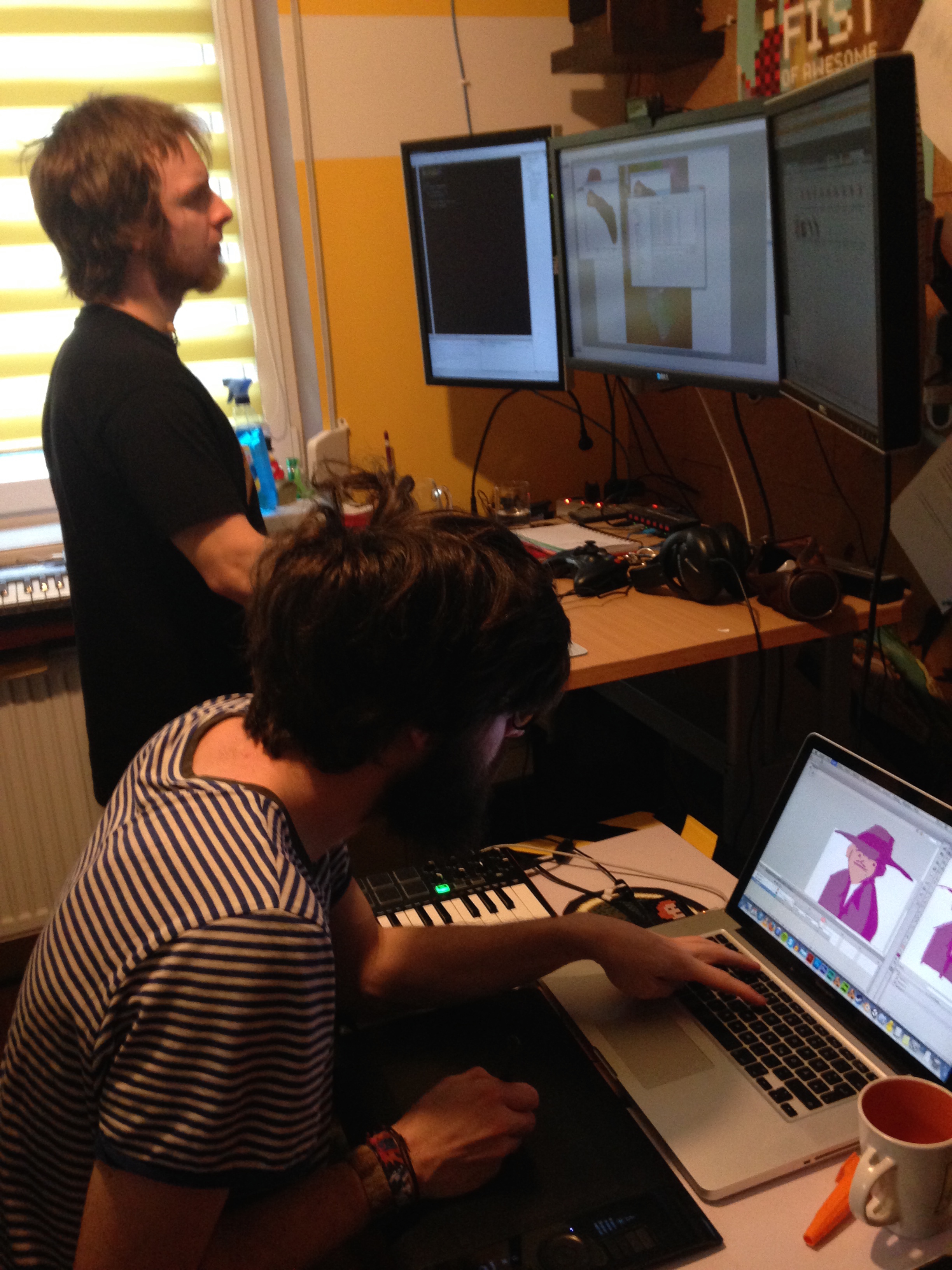 The fear of "too many cooks spoiling the broth" is quickly turned into a virtue of the game: as part of the concept, each artist helping out with the game jam, sticks to its indivudal style. The layout of the game is inspired by the boors of the grafitti scene who simply spray or tag over other peoples work. Broken Rules and Major Bueno dislike this behaviour, still it becomes the mechanism of the game "Ubermaler". After three joyful and creative days in Vienna it is time to say goodbye travelling on to Lodz!